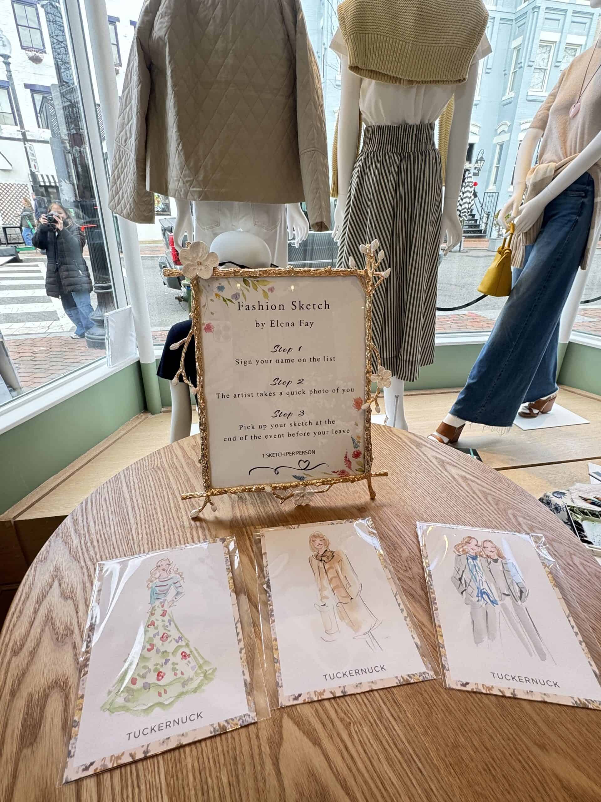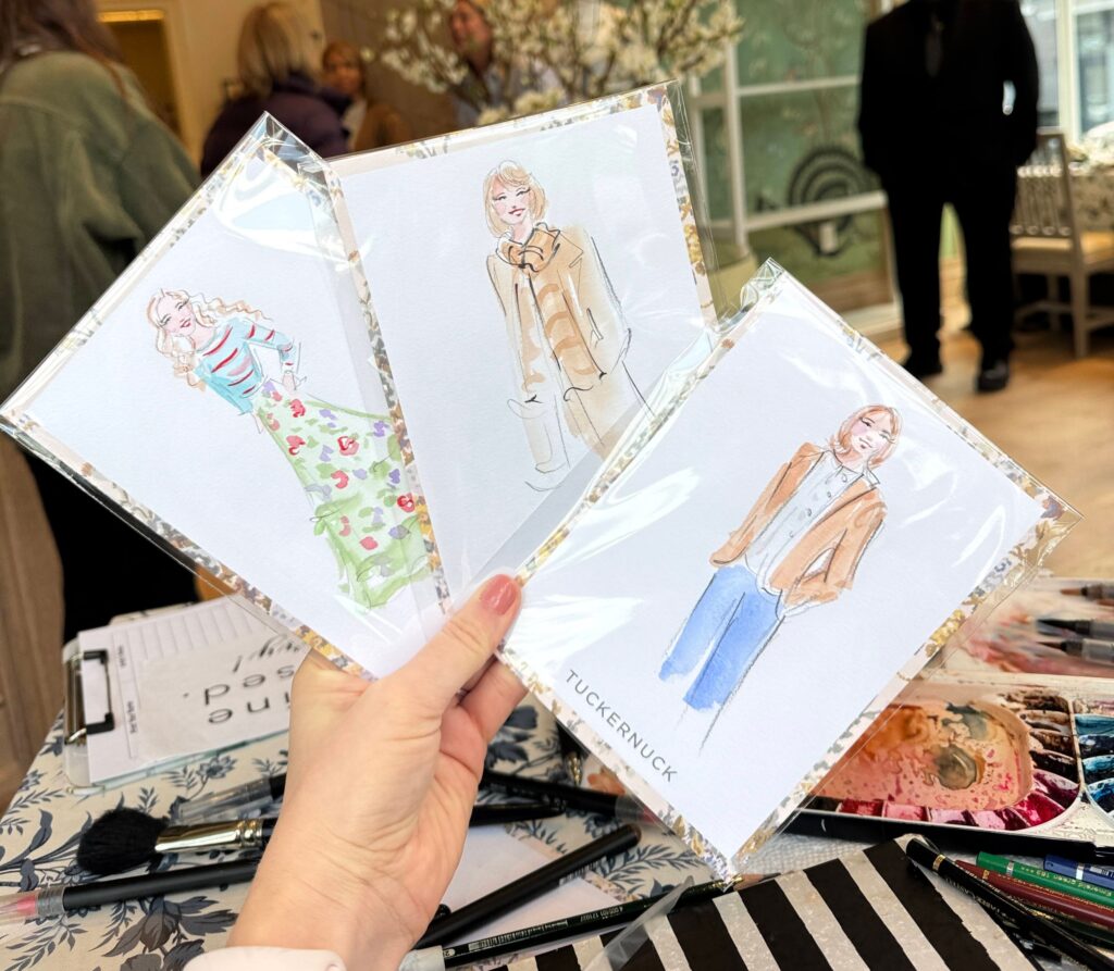I had the pleasure of live sketching guests at the Tuckernuck store opening in Georgetown, DC, and it was truly such a beautiful experience. The location was charming, the decor was thoughtfully curated, and it created the perfect setting for live watercolor and ink fashion sketches. Events like this are always a joy — capturing guests in real time while adding an elegant, interactive element to a special brand moment.