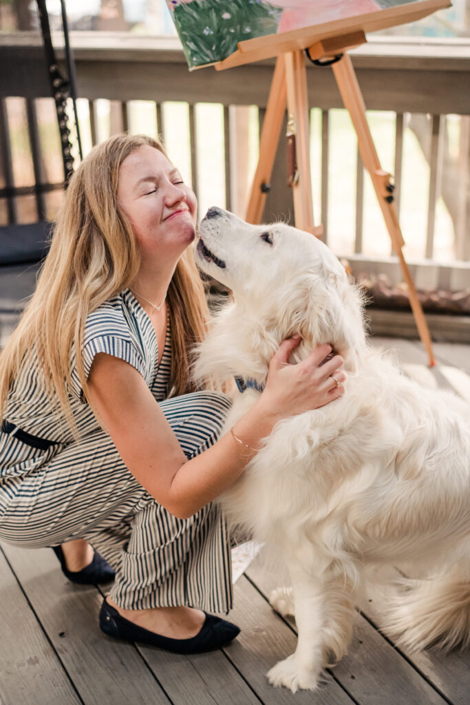 Outside of painting and designing, I spend my days chasing little moments of inspiration, whether in my garden, planning our next family adventure, or playing with new art supplies. And, of course, I’m always trying to keep up with my super energetic boys and our fur baby- golden retriever, Marvel!